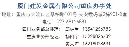 重慶是中西部集水、陸、空綜合交通樞紐為一體的特大型城市,擁有汽車、裝備制造等眾多千億級集群產(chǎn)業(yè)。此次重慶辦事處的成立,是建發(fā)金屬布局全國的第24家經(jīng)營網(wǎng)點,標志著建發(fā)金屬向扎根大西南、服務大西南戰(zhàn)略布局更進了一步。