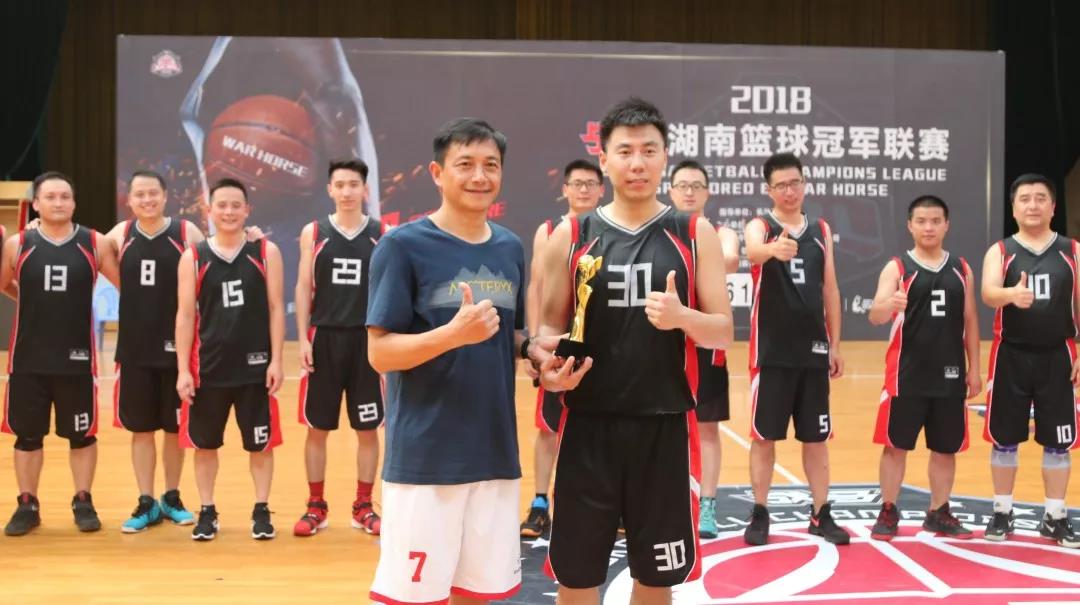 (肖忠東為建發(fā)金屬籃球隊(duì)頒發(fā)獎(jiǎng)杯)