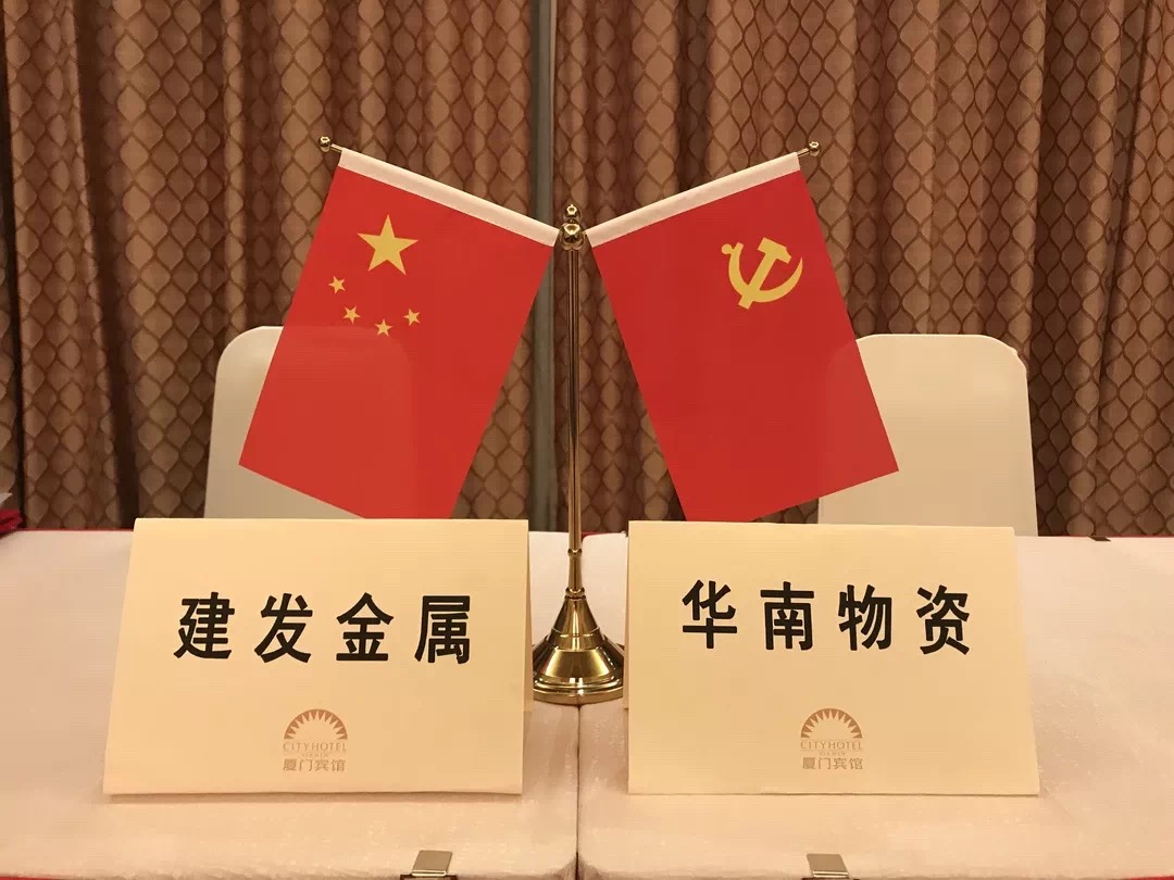 (華南物資李剛、建發(fā)金屬?gòu)埱迦A分別代表雙方簽訂戰(zhàn)略合作協(xié)議)
