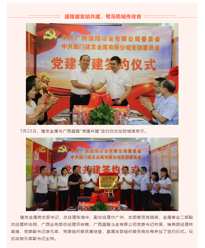 建發(fā)金屬與廣西盛隆舉行黨建共建簽約儀式