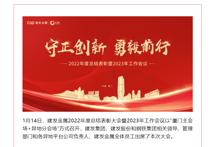 守正創(chuàng)新 勇毅前行 | 建發(fā)金屬召開2022年度總結(jié)表彰大會暨2023年工作會議