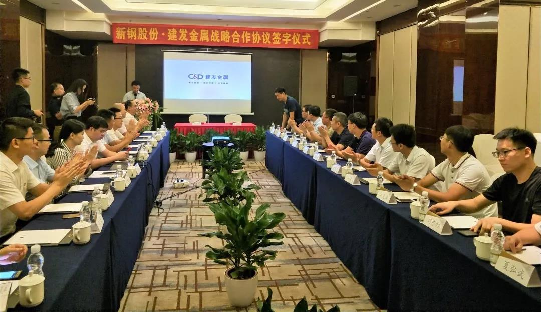 2018年8月4日上午,新鋼股份與建發(fā)金屬戰(zhàn)略合作協(xié)議簽訂儀式在長(zhǎng)沙舉行,新鋼股份總經(jīng)理助理肖忠東、廈門(mén)建發(fā)金屬公司總經(jīng)理張清華分別代表雙方簽訂戰(zhàn)略合作協(xié)議。新鋼股份、建發(fā)金屬公司有關(guān)人員參加了戰(zhàn)略合作協(xié)議簽字儀式。