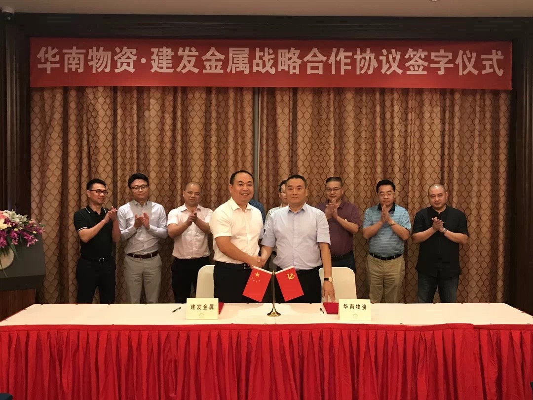 (華南物資李剛、建發(fā)金屬?gòu)埱迦A分別代表雙方簽訂戰(zhàn)略合作協(xié)議)