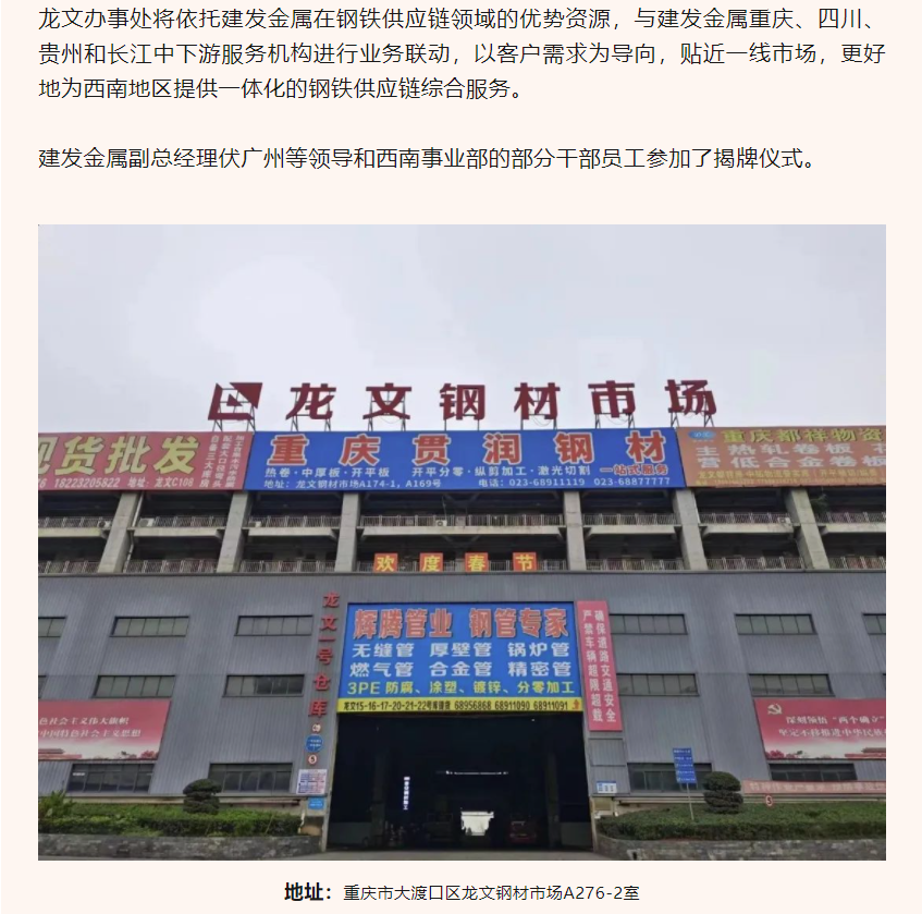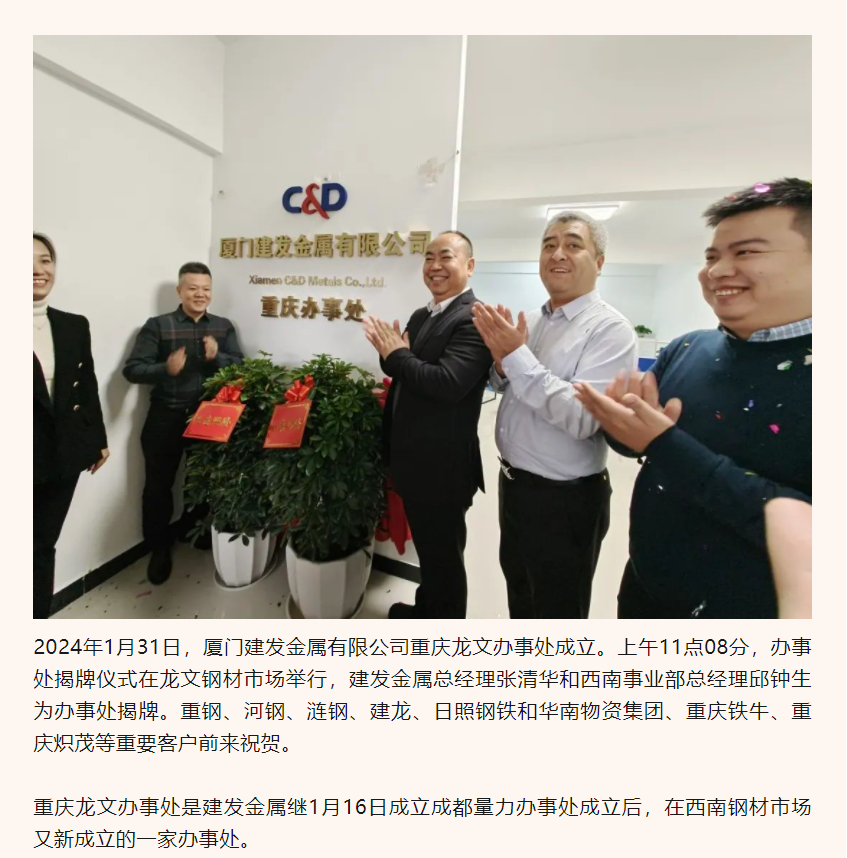 續(xù)添新力!建發(fā)金屬重慶龍文辦事處成立